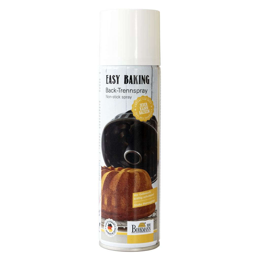 Mit der Sprühdose lässt sich so das rein pflanzliche Back−Trennmittel einfach auf alle Formen auftragen. Da bleibt keine Stelle übrig, an der das Backgut später noch kleben bleiben könnte.