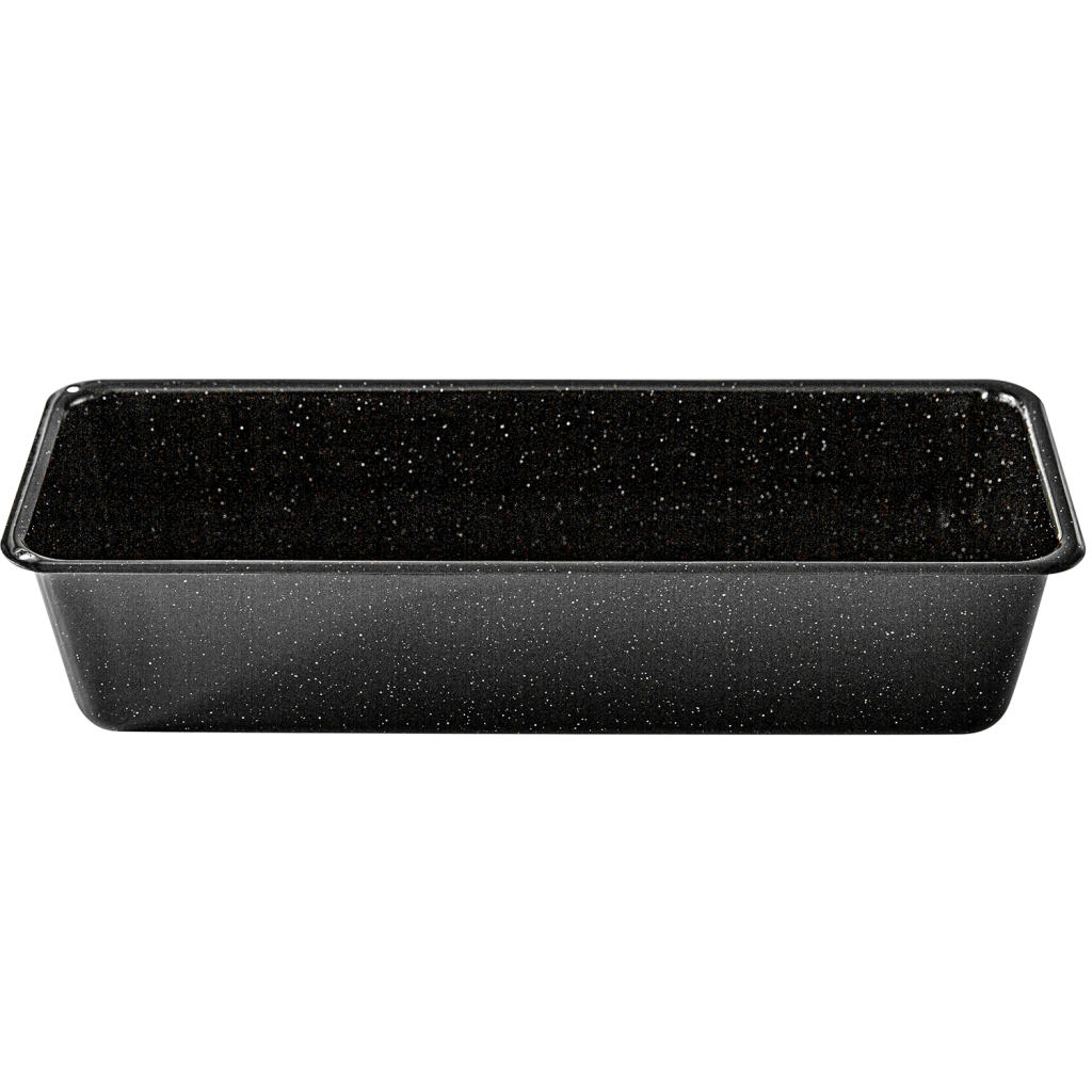 Schnitt- und kratzfeste Brotbackform aus Eisen mit Emaillierung innen und außen.
