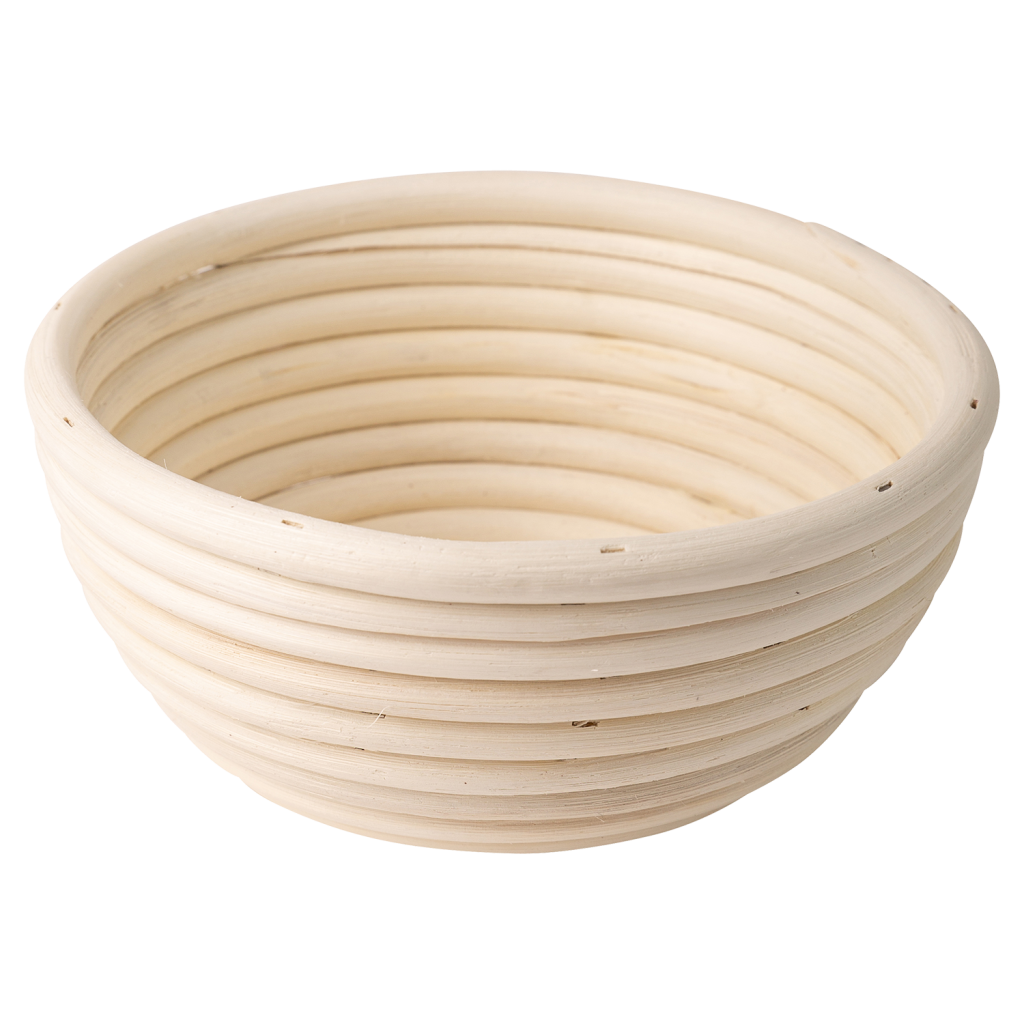 Gärkörbchen aus Peddingrohr zum Gehen lassen von einem Brotlaib.
