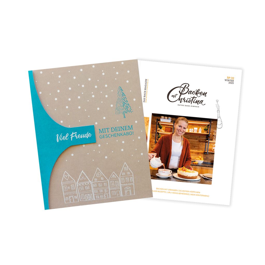 - Im Laufe des Jahres 2026 erhält die beschenkte Person die vier weiteren Magazin-Ausgaben von „Backen mit Christina“, direkt nach Hause – jede Ausgabe steckt voller Rezepte, spannender Geschichten und praktischer Tipps & Tricks rund ums Backen.