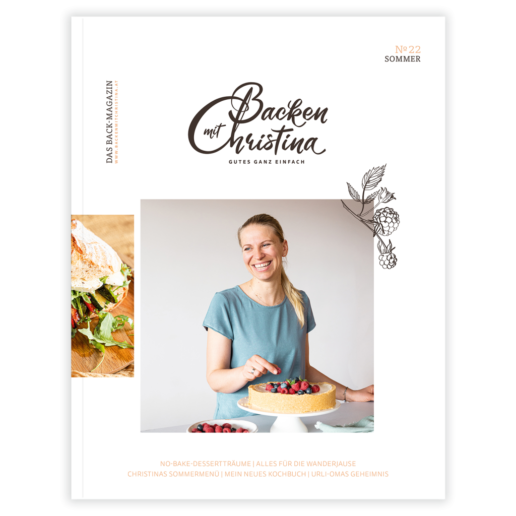 - Themen: No-Bake-Dessertträume, alles für die Wanderjause, Christinas Sommermenü, mein neues Kochbuch, Urli-Omas Geheimnis